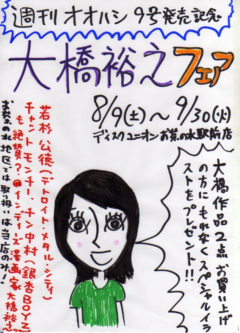 あさっての8/9(土)から、ディスクユニオンお茶の水駅前店インディーズコーナーにて、【大橋裕之フェア】を開催します!
