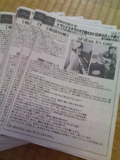 今月号は、shiba in carの特集です。そして、ライブレポでは先日の『都会の迷子さん』の模様を、九龍ジョーさんの心温まる文章で、長塩礼子さんの写真で楽しめます。ぜひ、読んでください。とりあえず店頭のみで配布中です。