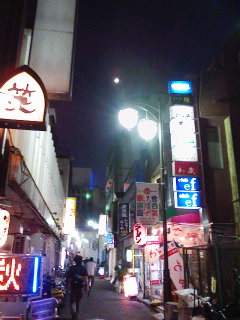 歌舞伎町の路地、わずかにある少し静かな路地で見た頭上の月、何だか不思議と澄んでいた。