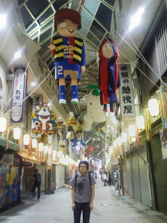 阿佐ヶ谷のパール商店街へ行ったら、頭上に大きな鬼太郎とねずみ男がいた。あと、ヤッターマンもいた。記念に撮影してもらった。阿佐ヶ谷はよい町だと思う。