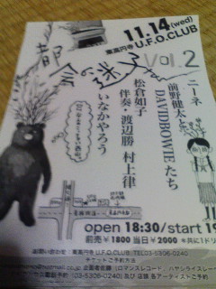 場所と日にちは、11月14日(水)東高円寺U.F.O.CLUBさんです。